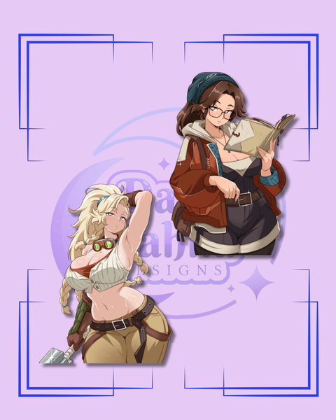Bring a burst of 90s nostalgia to your gear with these playful Hunter’s Guild Members stickers inspired by Alma and Gemma from Monster Hunter Wilds. Perfect for decorating laptops, water bottles, or notebooks, these vibrant stickers capture the retro vibe while celebrating your love for the hunt. Add some fun flair to your collection with this unique throwback design! Specs- 6in tall, gloss finish, weather/waterproof