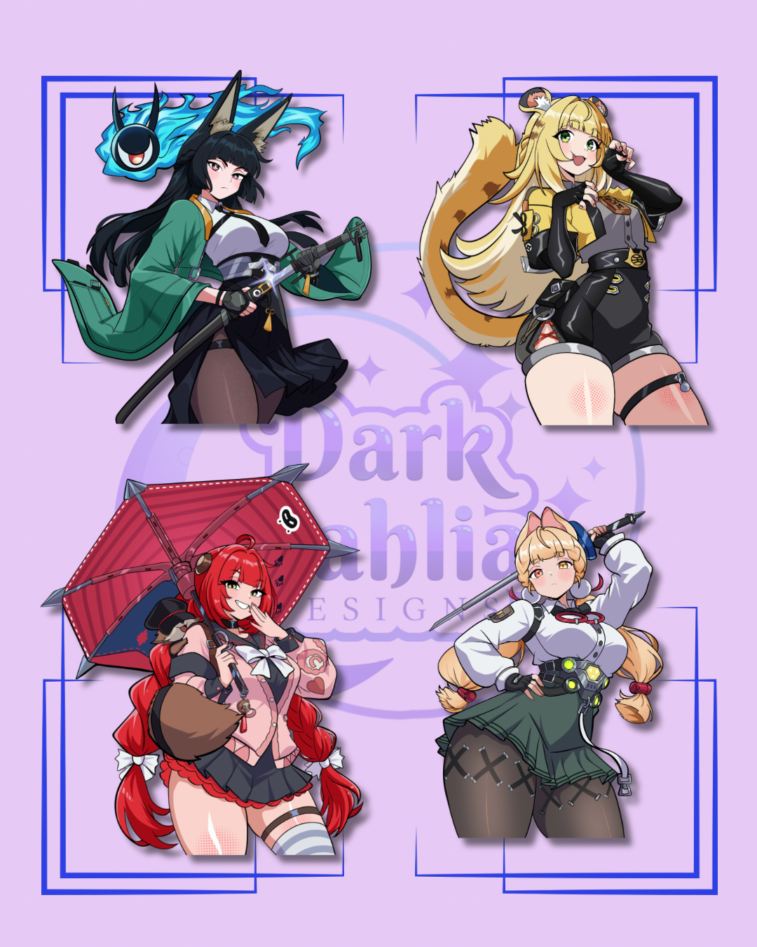 Bring the fun to your gear with Agents of New Eridu Stickers! Featuring Alice, Ju Fufu, Miyabi, and Yuhuza, these playful stickers show off the city’s awesome protectors. Perfect for decorating laptops, water bottles, or notebooks—let these agents guard your stuff in style! Specs- Alice/Ju Fufu (7in tall, weather/waterproof, gloss finish) Miyabi/Yuhuza (6in tall, weather/waterproof, gloss finish)