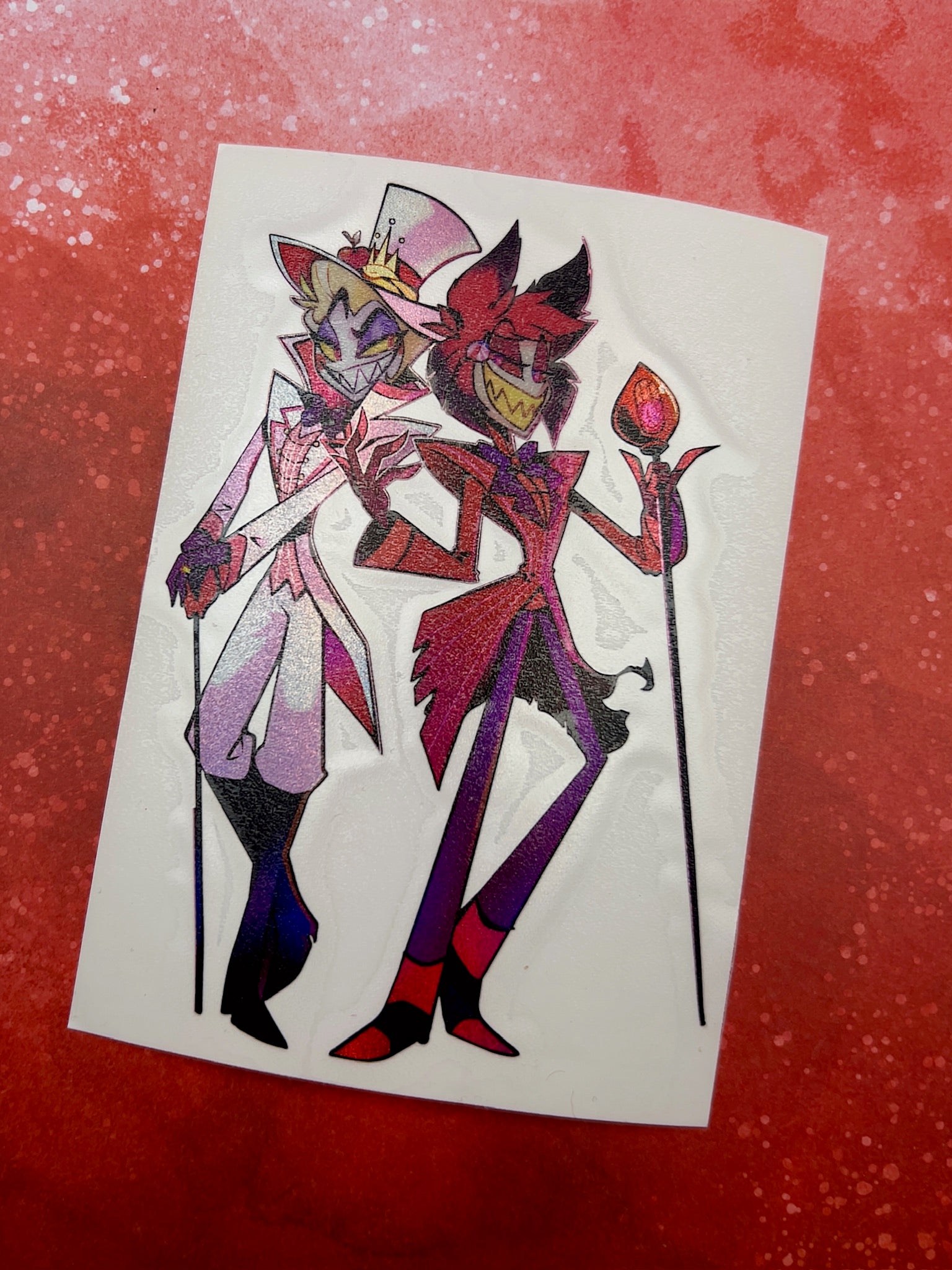 Celebrate the ultimate dad rivalry with this playful "Hell's Greatest Dads" sticker featuring Alastor and Lucifer.