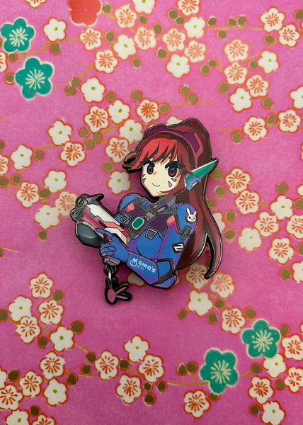 DVA from Overwatch is ready to rock with this playful Kawaii Mech Pilot Enamel Pin—perfect for adding a fun pop to any look!
