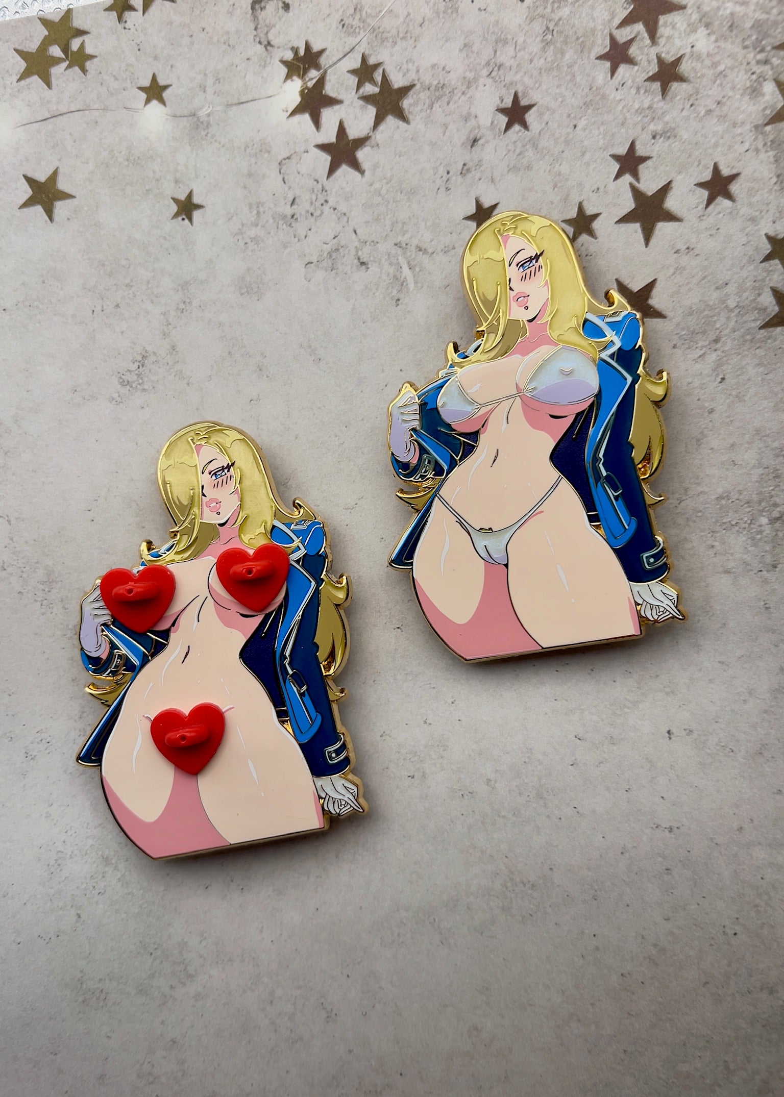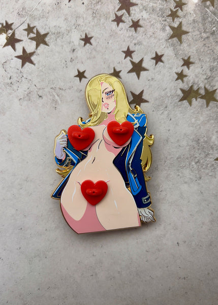 Olivier’s bringing the heat with this enamel pin set—will you accept her orders to add her to your pinboard?