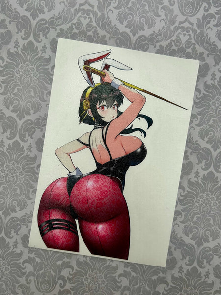 Add a dash of fun with the Thorn Princess Sticker featuring Yor from Spy Family in her iconic bunny suit. This playful design is perfect for sprucing up your laptop, water bottle, or notebook, bringing a smile wherever you stick it. Let Yor’s lively charm brighten your day!
